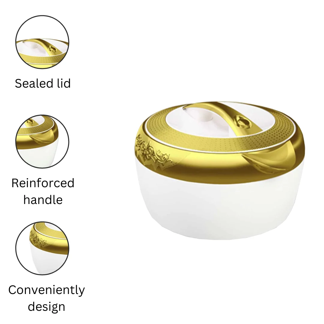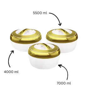 The Hisense Gold 3-Piece Hot Pot Set is designed to keep your meals warm and fresh for extended periods, combining functionality with an elegant aesthetic.