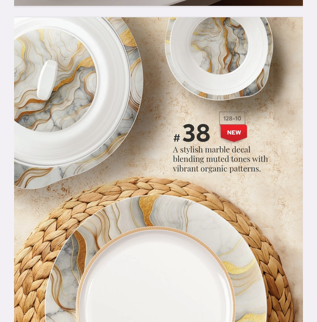 Made from premium-quality melamine, each piece reflects a fine ceramic-like look while being lightweight, unbreakable, and easy to clean. The modest yet graceful design brings timeless charm to your table, blending effortlessly with any decor or theme.