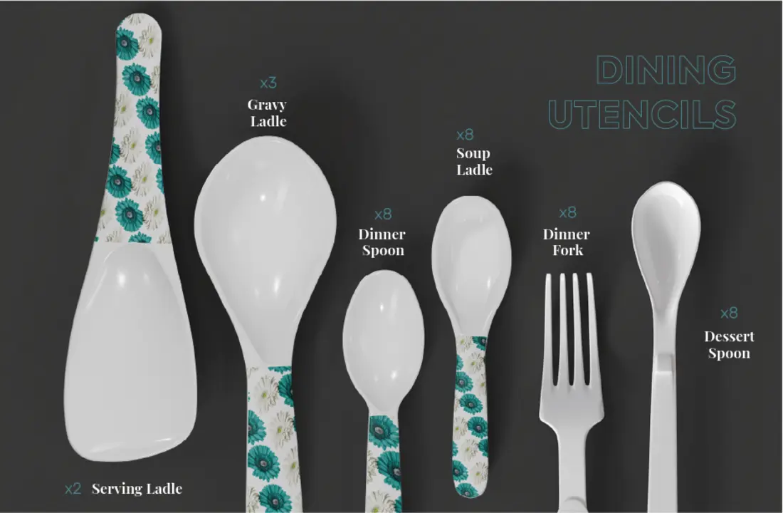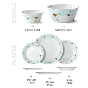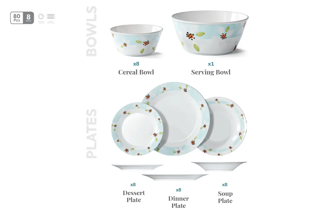 This dinner set is stain-resistant, dishwasher-safe, and ideal for both indoor and outdoor use. Whether you’re hosting family dinners or serving guests, the Montage set promises convenience, durability, and style in one package.
