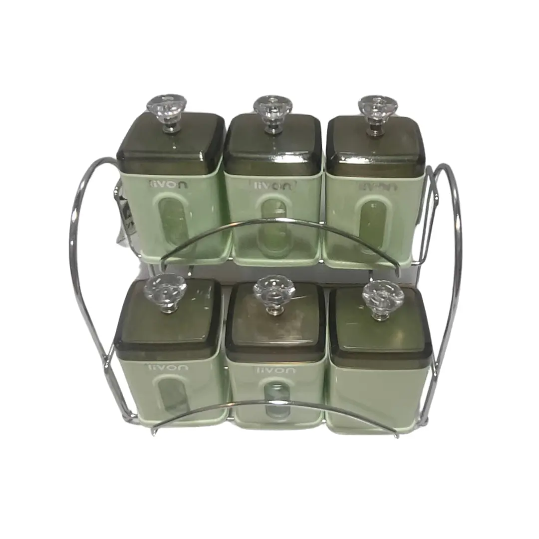 Spice Organizer 6 Jar – Airtight with Acrylic Cover & Steel Stand